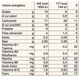 Tabella 2: Esempio di etichetta nutrizionale di un prodotto fortificato