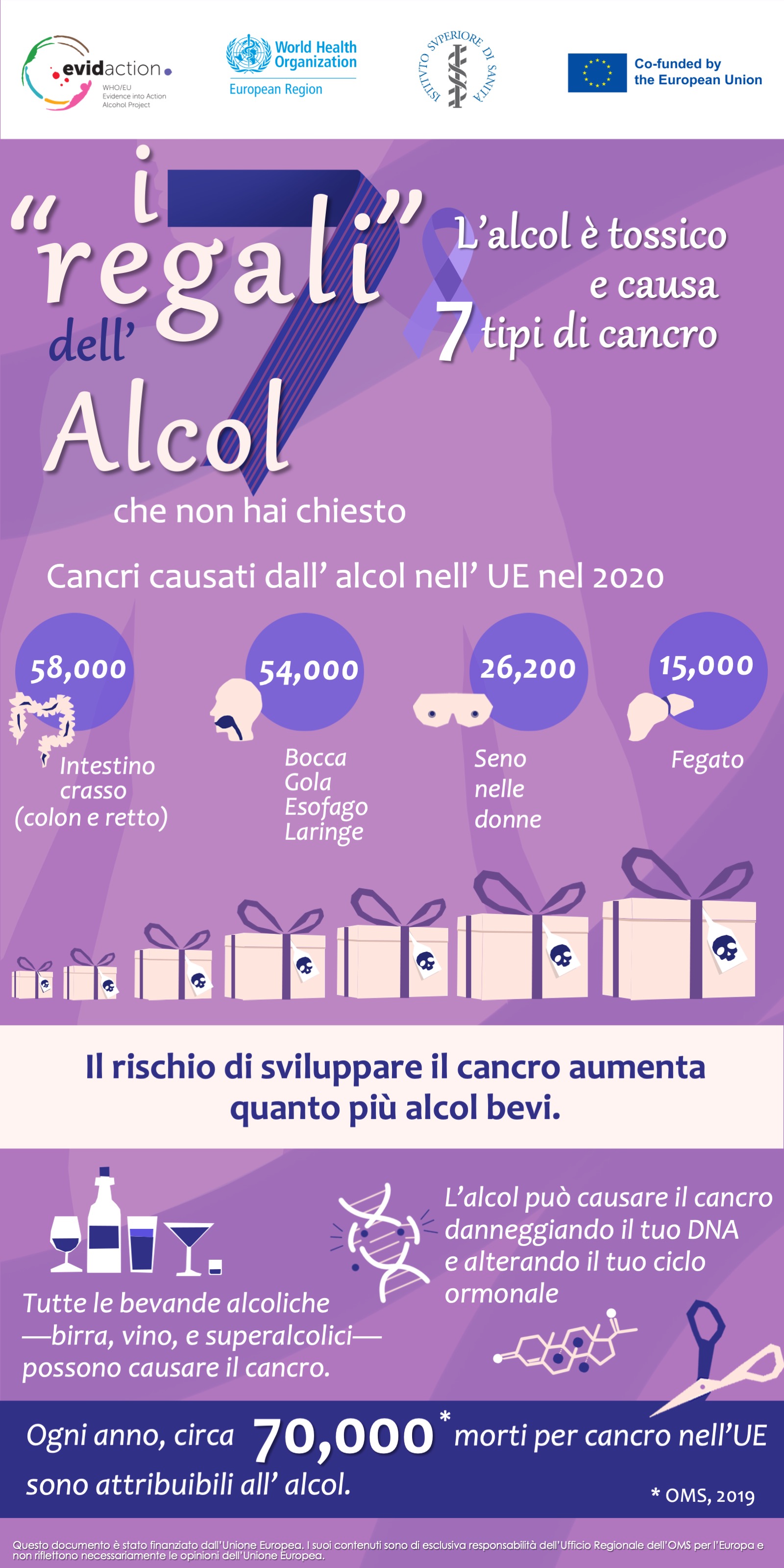 - L’alcol causa 7 tipi di cancro inclusi il cancro del seno e del colon. (pdf, jpg)