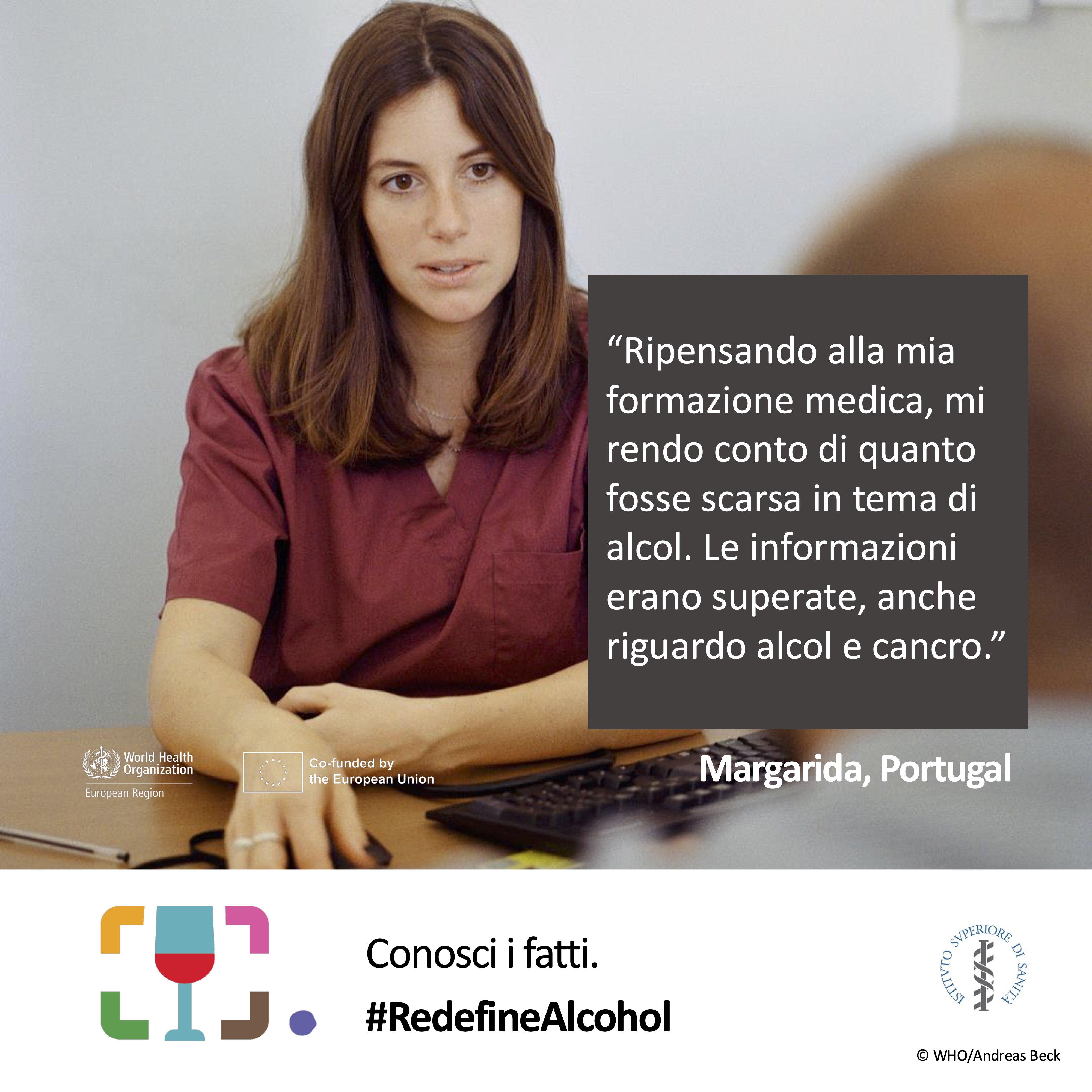 - “Ripensando alla mia formazione medica, mi rendo conto di quanto fosse scarsa in tema di alcol. Le informazioni erano superate, anche riguardo alcol e cancro.” (pdf, jpg)