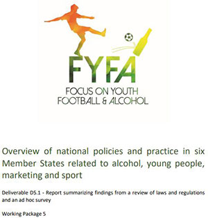 FYFA - Focus on Youth Football and Alcohol - è un progetto europeo (concluso il 31 agosto 2020) che ha coinvolto alcuni istituti di ricerca di sei Paesi europei (Belgio, Finlandia, Italia, Polonia, Slovenia e Regno Unito). Tra gli obiettivi vi era quello di utilizzare i contesti di aggregazione sportiva per veicolare iniziative e sollecitare l’adozione di politiche atte a prevenire i danni alcol-correlati nei giovani, soprattutto nei contesti in cui possono essere sottoposti a pressioni in merito alla cultura del bere