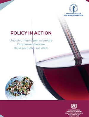 - Il documento completo in italiano “Policy in Action. Uno strumento per misurare l’implementazione delle politiche sull’alcol” (pdf 662 kb) e le relative fact sheet (pdf 391 kb) prodotte in occasione dell’Alcohol Prevention Day 2019