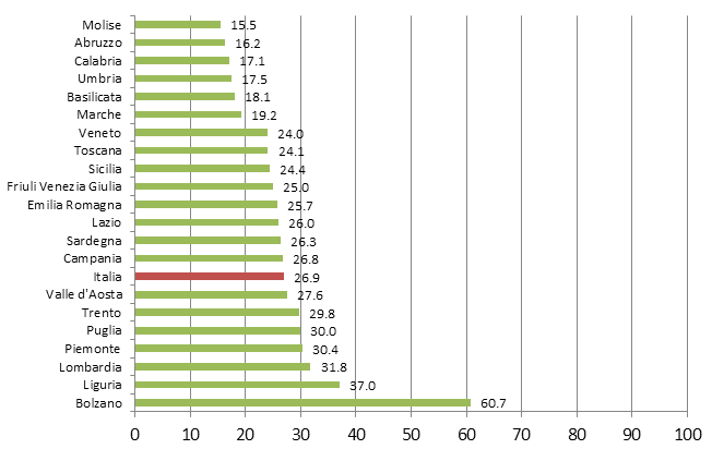 Figura 1: quota di bambini che si reca a scuola a piedi o in bicicletta