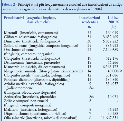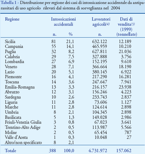 Intossicazioni acute da antiparassitari di uso agricolo rilevate dai centri antiveleni nel 2004