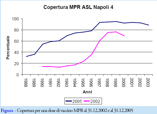 Nell’ASL Napoli 4, che conta 550.000 abitanti, nascono media-mente 7.000 bambini all’anno: nel 2004 sono state somministrati 31.219 dosi, di cui 14.875 seconde dosi, a bambini di età inferiore ai 14 anni; nel 2005 sono state somministrate 21.662 dosi.