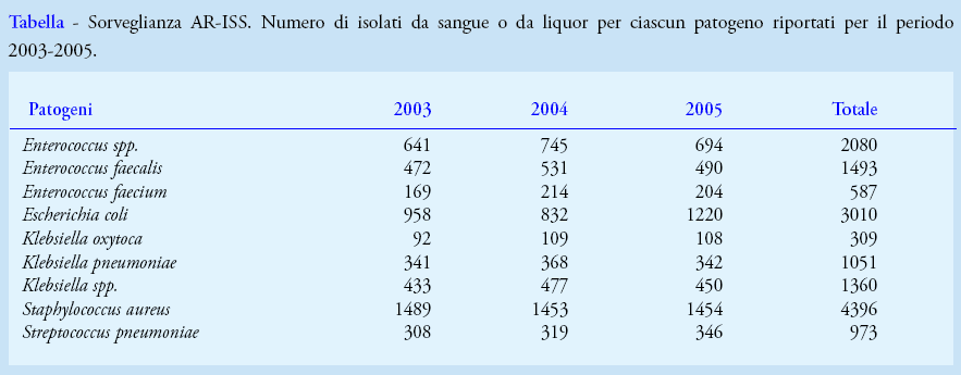 nel 2003, 4,2% nel 2004, 4,1% nel 2005; in E. faecium: 76,9%