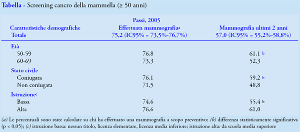 Lo screening per la neoplasia della mammella in Italia: i risultati dello studio Passi (progressi delle aziende sanitarie per la salute in Italia)