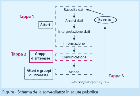 - un comitato tecnico composto dai responsabili regionali della prevenzione, il cui apporto sarà essenziale per “l’aggancio” di tutta l’informazione prodotta dal sistema con l’azione rappresentata dai piani di prevenzione (Tappa 3 nella figura); tale comitato dovrà assicurare la leadership della sperimentazione della sorveglianza, favorendo la partecipazione regionale nell’identificare e appoggiare le strategie del progetto, garantire la rilevanza e la pertinenza delle aree di studio della sorveglianza, suggerire nuovi temi di studio, identificare un piano di comunicazione efficace e appoggiarne la realizzazione, suggerire modalità appropriate ed efficaci di utilizzazione dei dati prodotti dal sistema.