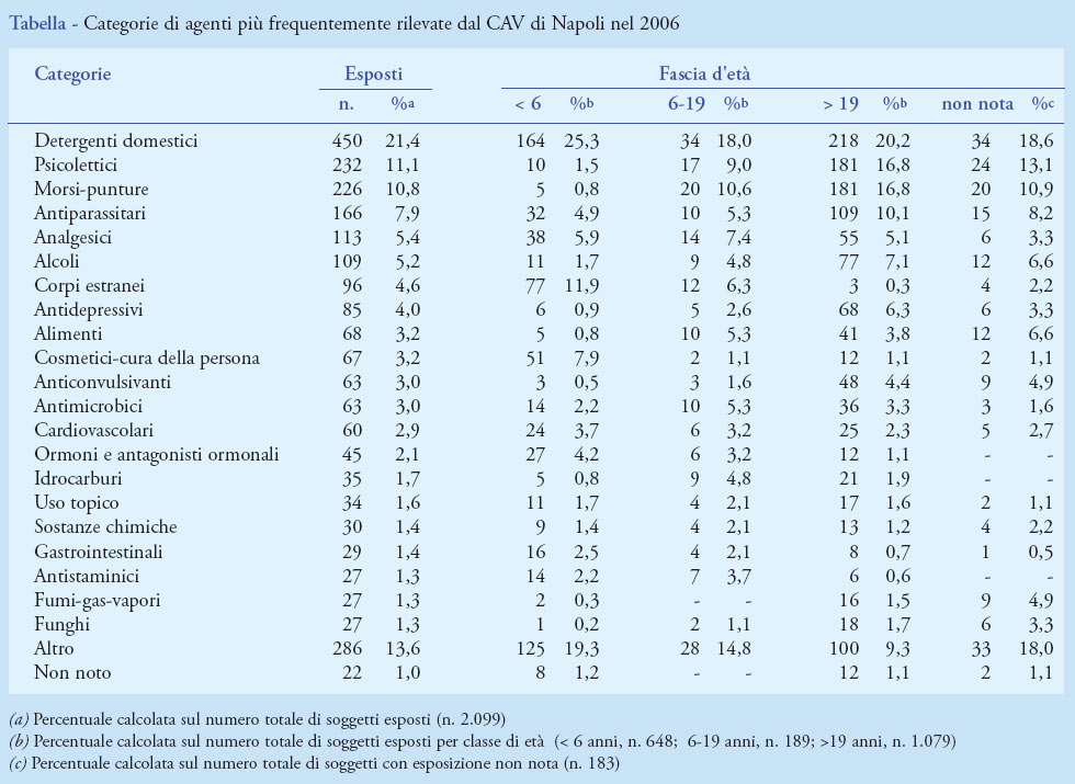 Sorveglianza delle esposizioni pericolose: la casistica del Centro Antiveleni di Napoli nel 2006