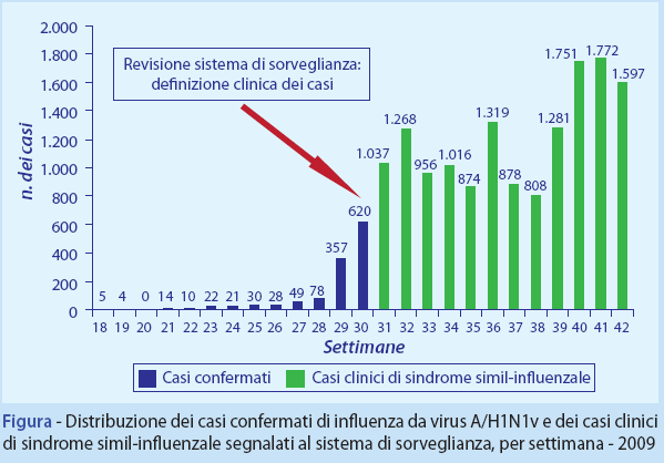 Nella primissima fase della pandemia veniva richiesta la conferma di laboratorio per tutti i casi sospetti; successivamente, il numero crescente dei casi e la trasmissione di comunità ormai stabilita in molte aree del mondo ha reso estremamente difficile la conferma di laboratorio per tutti i casi. Per questo motivo, il 27 luglio 2009, il Ministero del Lavoro, della Salute e delle Politiche Sociali ha aggiornato le indicazioni relative alla prevenzione, sorveglianza e controllo dell’influenza da virus A/H1N1v, modificando la definizione di caso (5) e raccomandando la conferma di laboratorio solo per un campione di casi clinici. L’aggiornamento della sorveglianza prevedeva, inoltre, la segnalazione settimanale da parte delle regioni dei casi clinici di ILI, dei casi confermati di influenza da virus A/H1N1v, dei casi ospedalizzati e dei decessi.