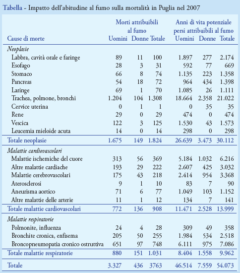 Impatto dell'abitudine al fumo sulla mortalità in Puglia nel 2007