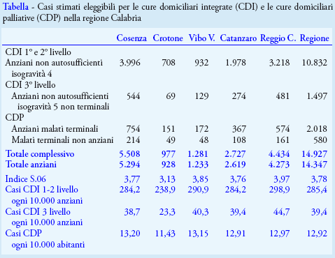 Stima dei fabbisogni potenziali di cure domiciliari nella regione Calabria