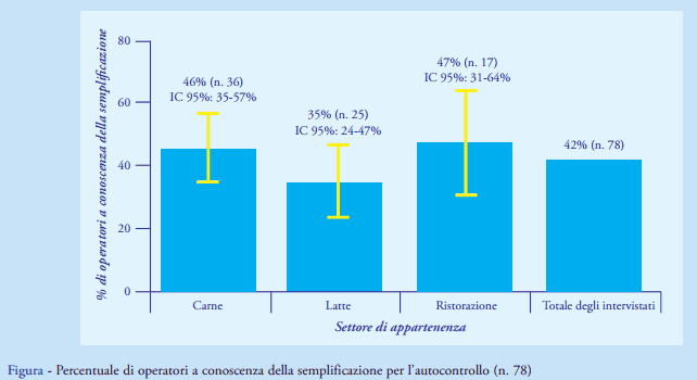 SUMMARY (Perception about food safety hazards and usefulness of a food safety management system: a survey among small-business operators in the Piedmont Region (Italy) after the enforcement of simplified procedures) - In 2015 we investigated on a sample of small-business operators of the meat, dairy and catering sectors the perception about the food safety hazards and the usefulness of a management system. By means of a telephone survey a total of 187 food operators were interviewed (79 butchers, 72 dairy producers, 36 restaurant owners). The main perceived hazards were the biological ones. Among meat operators, 46% (95%CI 35-57) of respondents reported being informed about the existing simplified management procedures, compared to 35% (95%CI 24-47) of dairy producers and 47% (95%CI 31-64) of restaurant owners. Most (77%) of the operators aware of simplified procedures perceived them as a real benefit. In conclusion, we identified a generally positive attitude towards the simplified procedures, but it’s still necessary to improve their dissemination at the local level.