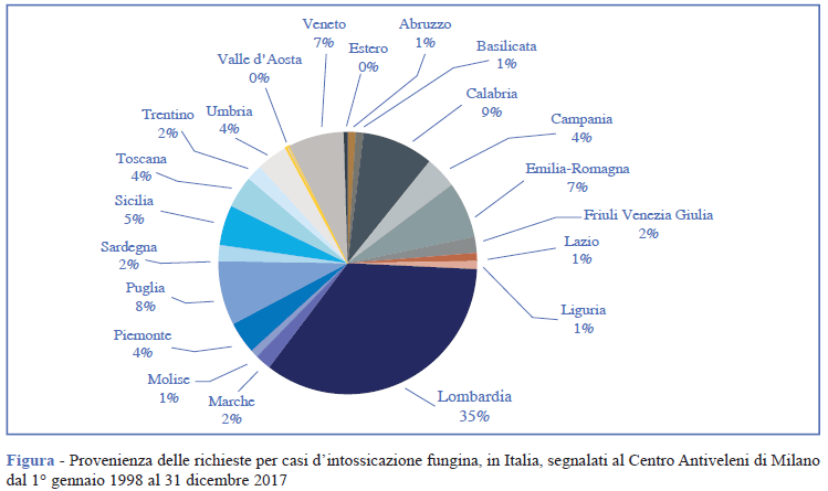 Dal 1° gennaio 1998 al 31 dicembre 2017 al CAV di Milano sono pervenute 15.864 richieste di consulenza per intossicazione da funghi; di queste, 12.813 riguardavano casi clinici, le restanti erano richieste di informazioni o richiami per follow up da parte dei medici.