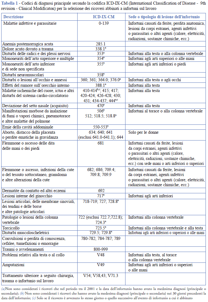 - infortuni gravi collegati a un ricovero (IGR): infortuni mortali; quelli seguiti da un ricovero ospedaliero avvenuto entro 7 giorni dalla data dell’evento e la cui diagnosi principale e la tipologia di lesione o parte del corpo lesionata corrispondono a quelle indicate nella Tabella 1; quelli seguiti da un ricovero ospedaliero entro 7 giorni dalla data dell’evento il cui motivo è “infortunio sul lavoro”, anche se la sede anatomica o tipologia di lesione non corrispondono a quelle indicate nella Tabella 1. In questi casi sono esclusi i ricoveri riguardanti il Trattamento Sanitario Obbligatorio (TSO), in quanto non compatibili con una fattispecie di infortunio.
