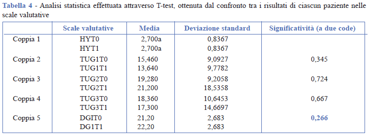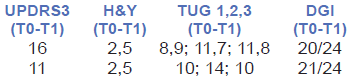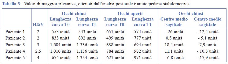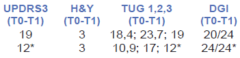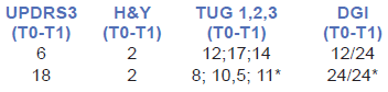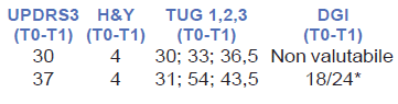 La scala con indici di risultato migliori è stata la DGI, attestando così il miglioramento nelle funzioni di motilità, equilibrio dinamico, deambulazione e rischio cadute. In seguito all’analisi posturale: