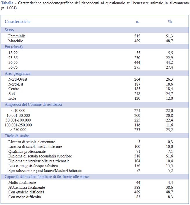 Il concetto di “benessere animale in allevamento” per i consumatori italiani: risultati di una indagine nazionale (aprile-maggio 2019)
