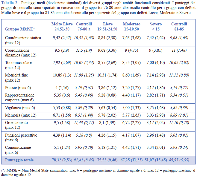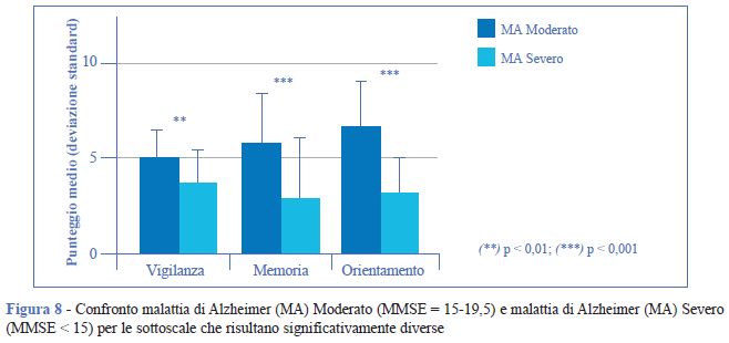 Dal confronto dei soggetti sani e con malattia di Alzheimer con livello di gravità severa (MMSE < 15), tutti i domini sono risultati essere compromessi.