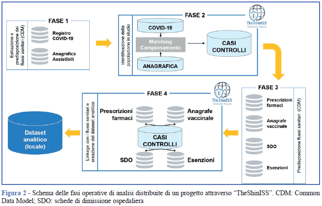 Nel descrivere le fasi operative di utilizzo di “TheShinISS”, applicato a uno studio multidatabase basato su CDM, si farà riferimento come esempio a uno studio caso-controllo multiregionale dove i casi sono rappresentati dai soggetti positivi al test SARS-CoV-2 identificati dai registri regionali di sorveglianza (registro COVID-19) e i controlli sono rappresentati dagli assistibili riferiti alla popolazione regionale di provenienza dei casi (anagrafica assistibili).
