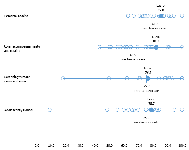 Il Lazio non conclude il ciclo della programmazione/valutazione dei servizi consultoriali intesa come attività periodica, risultando mancante l’aspetto della valutazione degli obiettivi raggiunti che richiede la disponibilità di un flusso informativo dedicato pienamente operativo.