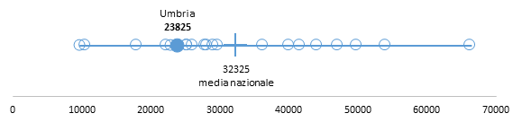 La diffusione dei CF sul territorio è capillare, molto al di sopra della media nazionale. Con una sede ogni 23.825 residenti l’Umbria è fra le 6 realtà (5 Regioni e 1 PA) con un numero medio di residenti per CF entro i 25.000, vicina al gold standard di una sede di CF ogni 20.000 abitanti (Figura 2).
