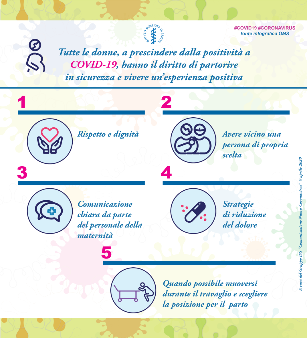 - scarica l’infografica: tutte le donne a prescindere dalla positività a COVID-19, hanno il diritto di partorire in sicurezza e vivere un’esperienza positiva (pdf 1,9 Mb - png 595 kb).