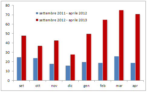 Poiché i dati riferiti al mese di aprile 2013 potrebbero non essere ancora completi, il numero dei casi potrebbe ancora aumentare.