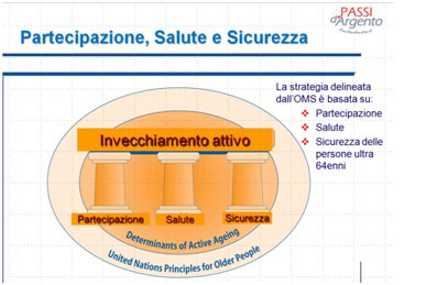 Con nuovo progetto affidato al Cnesps, Passi d’Argento sta diventando ora un sistema di sorveglianza della popolazione con più di 64 anni che prende in considerazione alcuni aspetti di salute e di malattia e li segue nel tempo producendo in tempo utile un’informazione per gli amministratori, per chi opera nel sistema sanitario, per gli ultra 64enni stessi e per le loro famiglie, in maniera tale da offrire a tutti un’opportunità per “fare meglio” proteggendo e promuovendo la salute, prevenendo le malattie e migliorando l’assistenza per questo gruppo di popolazione. In particolare si deve cominciare a operare (all’interno della comunità e del sistema socio-sanitario) per fare in modo che gli ultra 64enni diventino parte attiva della comunità. Questo nuovo approccio deve appoggiarsi evidentemente su una mentalità diversa, ma soprattutto deve essere sostenuto da metodi innovativi da sperimentare e, sulla base della loro efficacia, da estendere nei diversi contesti territoriali del Paese. Le strategie per l'invecchiamento attivo dovrebbero creare le condizioni e le opportunità per le persone anziane perché facciano una regolare attività fisica, una dieta sana, mantengano relazioni sociali, partecipino ad attività significative per loro e abbiano una sicurezza finanziaria. Il Passi d’Argento è uno strumento economico e duttile che permette di verificare in tempi brevi questi cambiamenti. Si presta bene cioè a seguire e documentare i cambiamenti necessari per promuovere l’healthy and active ageing. Passi d’Argento promette di diventare ancora uno strumento potenzialmente (più) utile (rispetto ad oggi) nella misura in cui verranno sviluppate strategie regionali e nazionali per l’invecchiamento attivo.