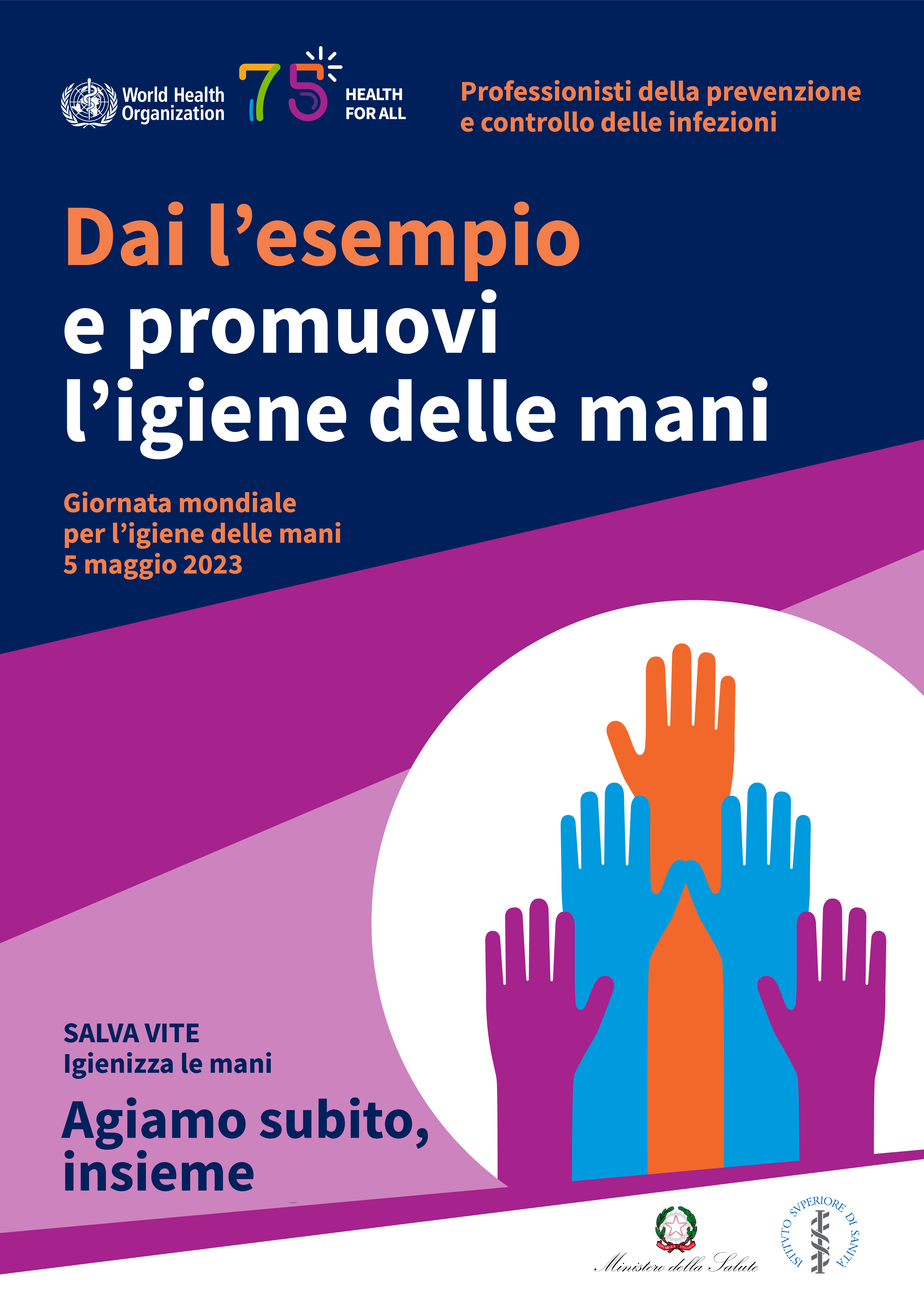 Il tema della campagna per la Giornata mondiale dell’igiene delle mani 2023 è: “Insieme possiamo fare di più per prevenire le infezioni e la resistenza agli antibiotici nell'assistenza sanitaria. Promuoviamo la cultura della sicurezza e della qualità delle cure. Diamo la massima priorità all’igiene delle mani”, con lo slogan: “Agiamo subito insieme - Salva vite: igienizza le mani”.