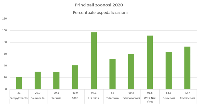 Fig 2: Principali zoonosi 2020 - Percentuale ospedalizzazioni