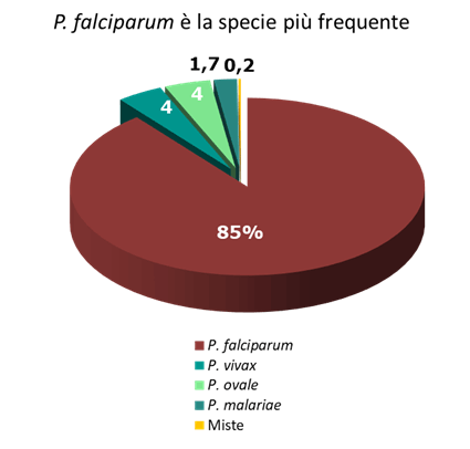 In linea con i dati nazionali dei periodi passati, nel 2017-2023 i casi importati sono stati causati in maggior misura da P. falciparum (Figura 3) di origine africana (99%), soprattutto Africa occidentale.