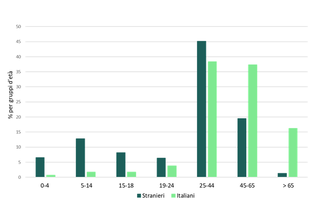 Il numero dei casi per anno viene mostrato nei valori totali e per nazionalità. Nella colonna stranieri sono inclusi sia gli immigrati regolarmente residenti in Italia sia quelli al primo ingresso.