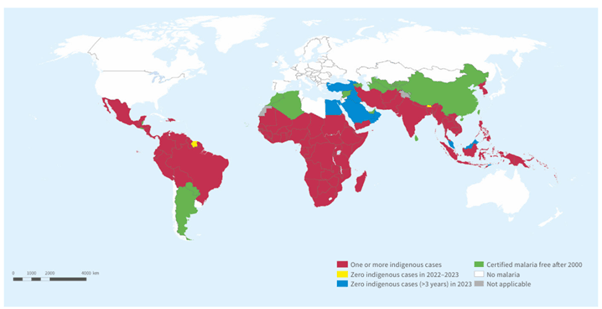 Ventinove Paesi registrano quasi il 95% dei casi di malaria a livello globale. La regione africana continua a sopportare il peso maggiore della malattia con circa il 94% dei casi. In particolare, Nigeria (25,9%), Repubblica Democratica del Congo (12,6%), Uganda (4,8%), Etiopia (3,6%) e Mozambico (3,5%) presentano più della metà di tutti i casi mondiali.