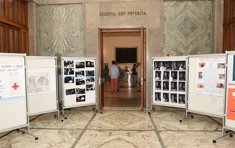 I poster sono stati presentati durante il convegno conclusivo organizzato dall’Iss e aperto dalla lectio magistralis di Monsignor Andrea Manto (medico e Direttore del Centro per la Pastorale della Famiglia della Diocesi di Roma) su “Scienza, Fede religiosa e pregiudizio popolare”. Le riflessioni conclusive della sessione dei poster (momento cardine del convegno durante il quale i ricercatori e gli esperti Iss hanno dialogato/commentato sui lavori presentati dai migranti) sono state affidate al giornalista scientifico Pietro Greco che aveva aperto il ciclo dei seminari con la lezione “Le radici ellenistiche e arabe della cultura scientifica”. Infine, i volti dei ragazzi partecipanti al progetto sono stati immortalati dal fotografo Francesco Francia in una serie di scatti d’autore, esposti in mostra durante il convegno. Francia ha scelto di utilizzare la modalità di scatto in low key, ovvero a fondo scuro, per far emergere i dubbi di questi ragazzi facendo luce tramite il sussidio della scienza. Come, infatti, ha sottolineato il presidente dell’Iss Walter Ricciardi: «la scienza è, oltre che un veicolo di inclusione, un terreno comune sul quale costruire cultura e valori condivisi».