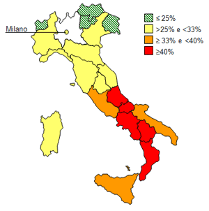 Si evidenzia, inoltre, una spiccata variabilità interregionale, con percentuali tendenzialmente più basse nell’Italia settentrionale e più alte nel Sud (dal 15% di sovrappeso e obesità nella Provincia Autonoma di Bolzano al 48% in Campania). Estrapolando le stime all’intera popolazione di alunni della scuola primaria, il numero di bambini in eccesso ponderale sarebbe pari a circa 1 milione e centomila, di cui quasi 400 mila obesi.