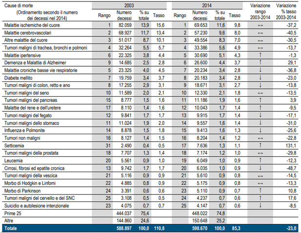 - Istat (2017) - L’evoluzione della mortalità per causa: le prime 25 cause di morte. Anni 2003-2014