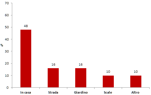 I dati raccolti dalla sorveglianza Passi d’Argento 2012/2013 mostrano che l’11% degli ultra 64enni ha dichiarato di essere caduto a terra nei 30 giorni precedenti all’intervista. Di questi il 14% ha avuto necessità di un ricovero ospedaliero di almeno un giorno. Le cadute avvengono per lo più in casa (60%) e meno frequentemente in strada (19%), in giardino (11%) o in altro luogo (10%).