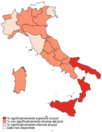 Scarica la tabella con i dati per Regione (xls 24 Kb). I dati sono standardizzati per età e sesso.