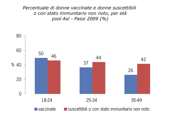 In totale, quindi, il 43% delle donne risulta o suscettibile (circa il 3%) o ignara del proprio stato immunitario (40%).