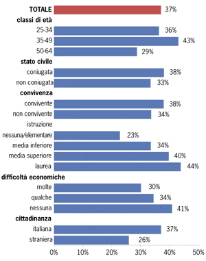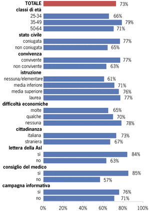 La copertura mostra un gradiente positivo per livello d’istruzione, assenza di difficoltà economiche riferite e ripartizione geografica.
