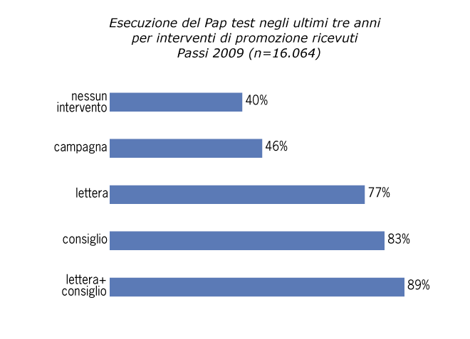 - il grafico “Esecuzione del Pap test negli ultimi tre anni per interventi di promozione ricevuti - Passi 2009 (n=16.064)” in formato gif