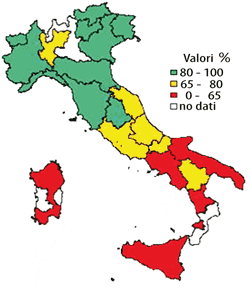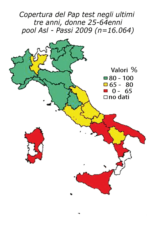 La copertura complessiva del Pap test preventivo è alta, ma ancora insufficiente in alcune Regioni, soprattutto nell’Italia meridionale e insulare in cui poco più di una donna su due pratica il Pap test nell’intervallo giusto.
