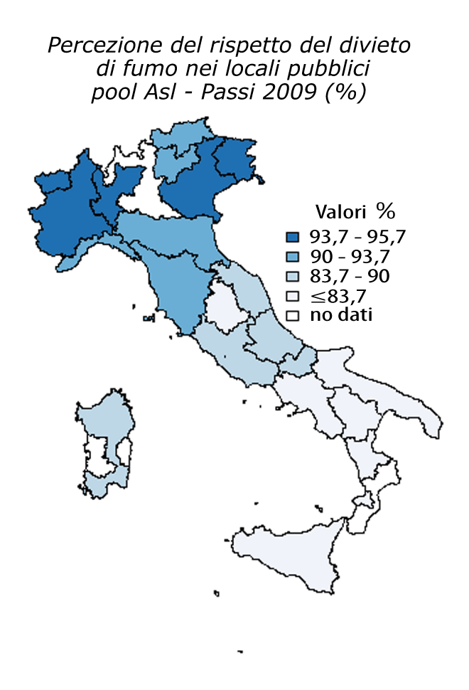 - la mappa “Percezione del rispetto del divieto di fumo nei locali pubblici, pool Asl - Passi 2009” in formato gif