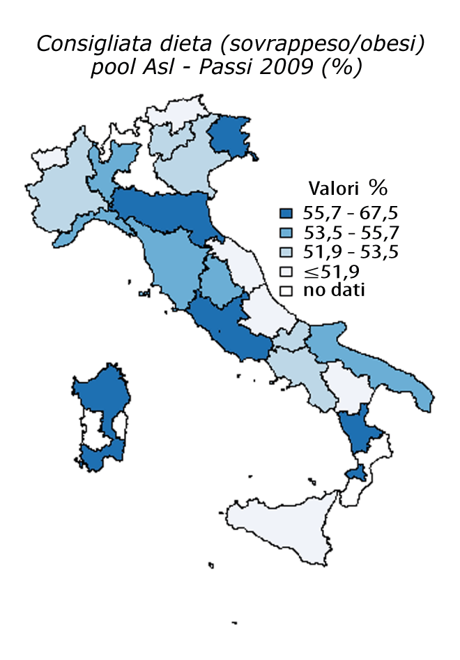 - la mappa “Consigliata dieta (sovrappeso/obesi), pool Asl - Passi 2009” in formato gif