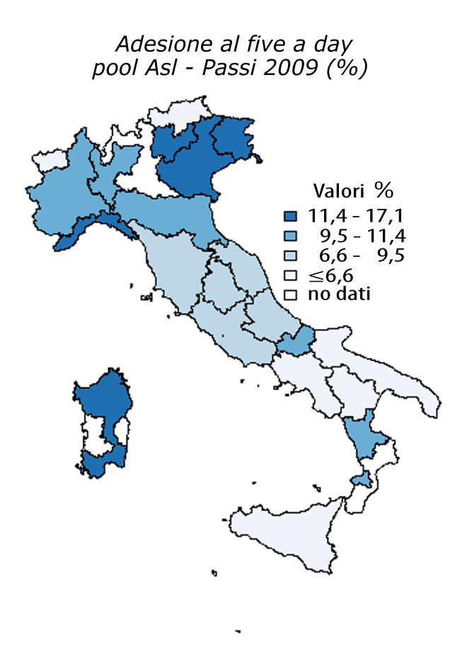 - la mappa “Adesione al five a day, pool Asl - Passi 2009” in formato gif