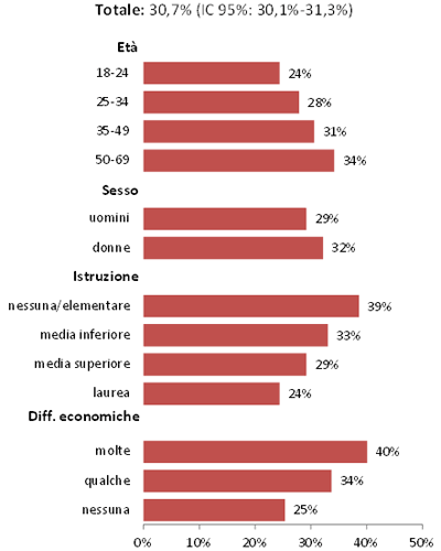 - nel 2010 era del 30,9% (IC 95%: 30,2-31,5%).