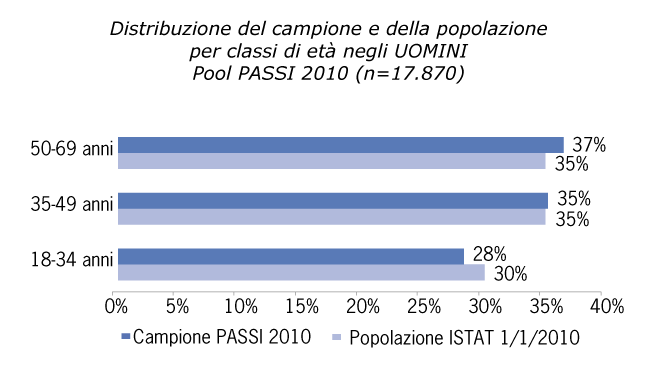 Da gennaio a dicembre 2010, sono state intervistate 36.319 persone nella fascia di età compresa tra 18 e 69 anni, selezionate con campionamento proporzionale stratificato per sesso e classe di età dalle anagrafi sanitarie di Asl o di Regione.