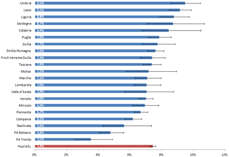 Totale: 6,4% (IC 95%: 6,1-6,7)