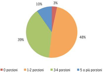 Il 97% degli intervistati ha dichiarato di mangiare frutta e verdura almeno una volta al giorno. Tra questi, il 39% ha riferito di mangiarne 3-4 porzioni.