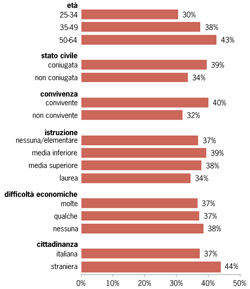 - la percentuale di donne che fanno il test al di fuori delle campagne di screening mostra un forte gradiente per livello d’istruzione e difficoltà economiche riferite ed è più elevata nelle cittadine italiane.