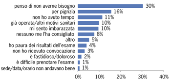 Motivi addotti per spiegare la mancata esecuzione del Pap test